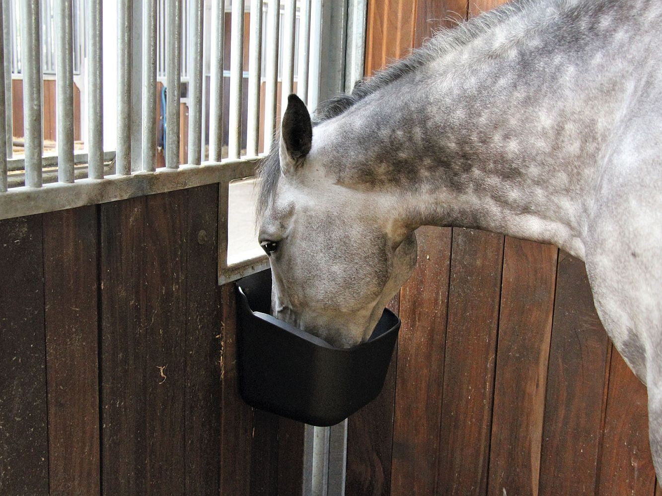 Robust fodertrug lavet af polypropylen ,ed bundprop, der gør det let at rengøre.