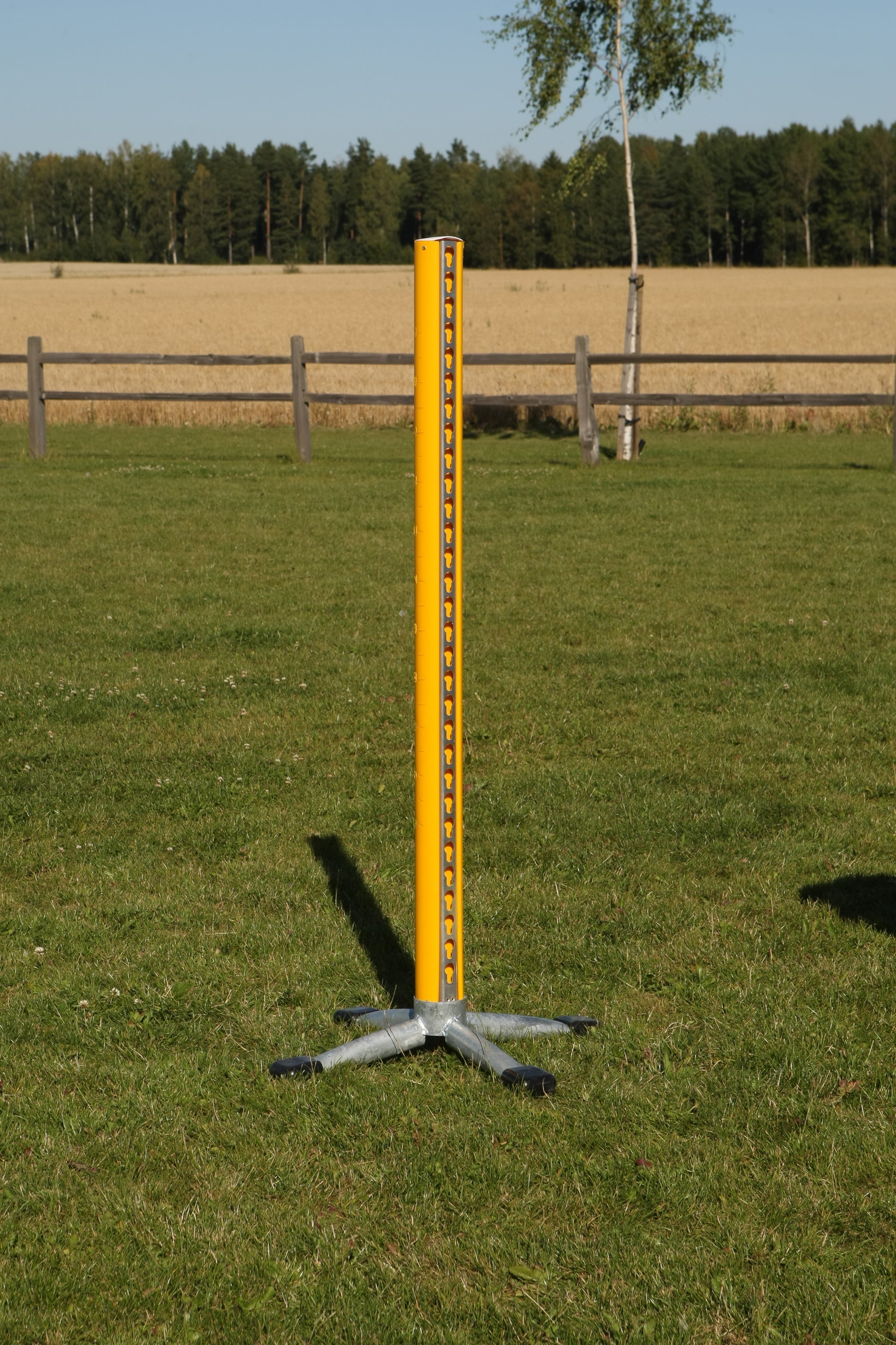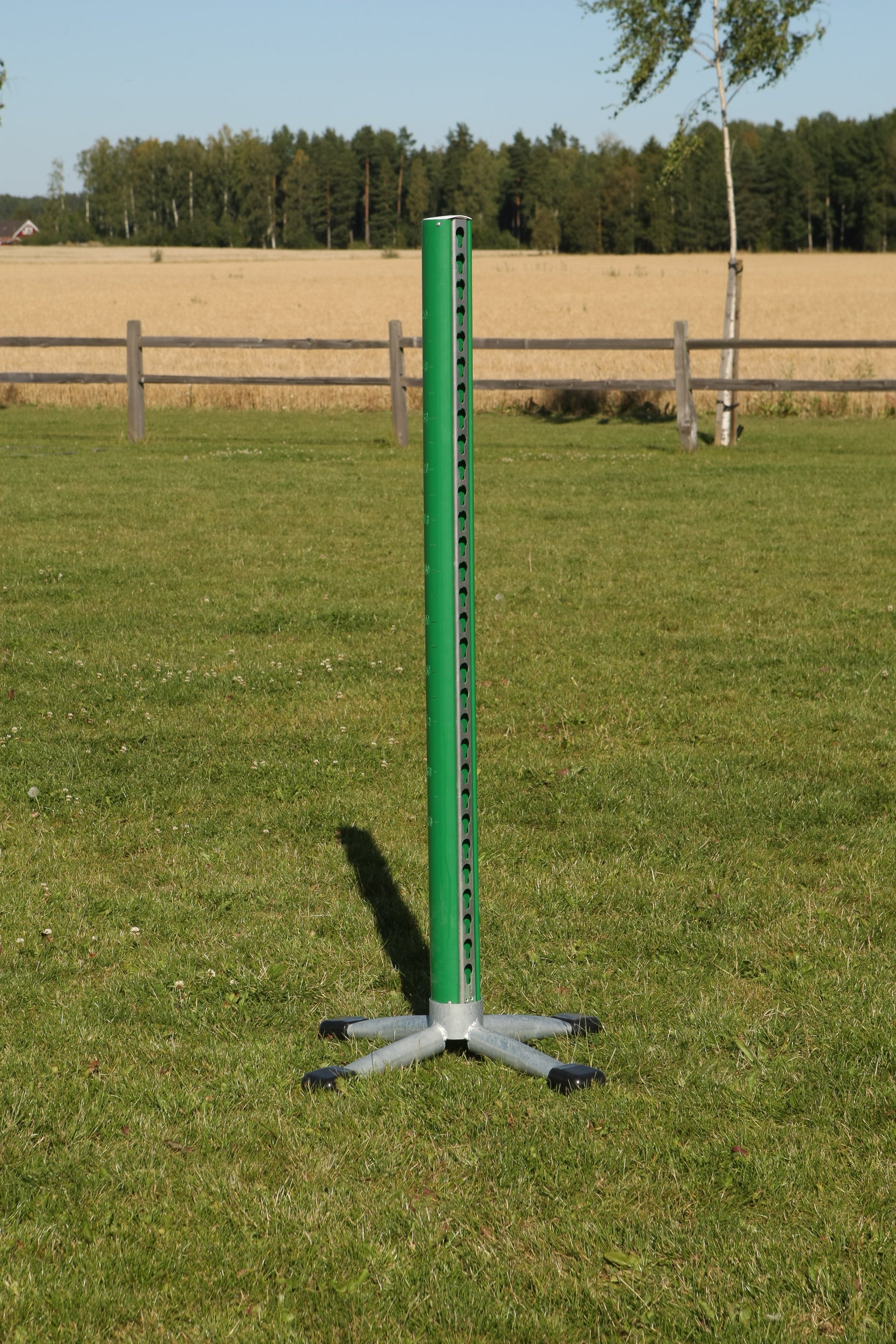 Ved at benytte denne støtte til stævner, mindskes risikoen for, at hest og rytter kommer til skade. Der er ingen skarpe hjørner eller kanter, skinnen er bygget helt ind i det runde rør. Enkeltstøtten er 165 cm høj og vejer ca. 7 kg.