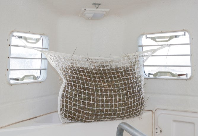 Så har du en hest der æder sit stråfoder for hurtigt, eller kaster det ned på gulvet i stedet for at æde det, så kan dette hønet måske hjælpe. Nettet bidrager til en længere ædetid og reducerer mængden af spild med op til 30 %.