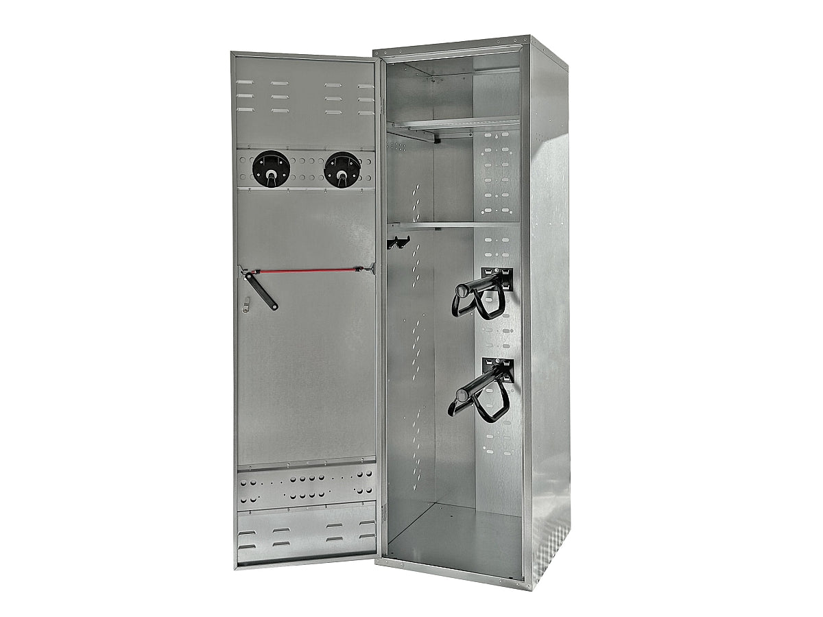 Sadelskabe i elforzinket stål. Udvendige kraftige håndtag