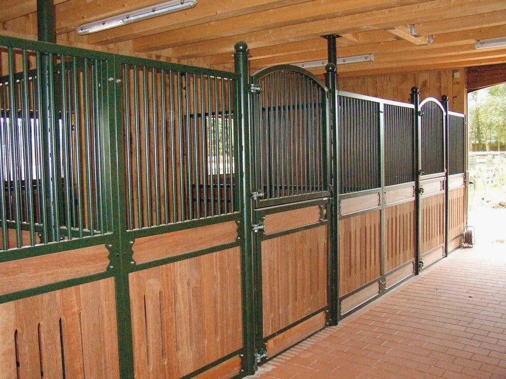 De 2 vandret liggende planker i fronten og den elegante bue over den hængslede dør gør Belamie Eksklusiv til den boks, dine heste har fortjent.