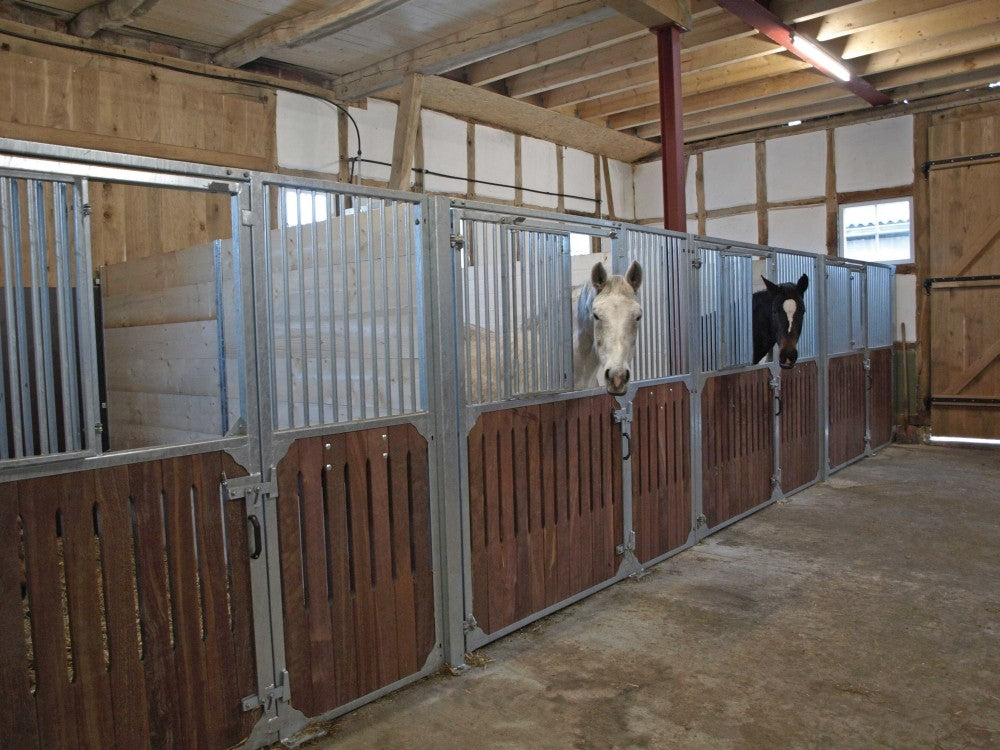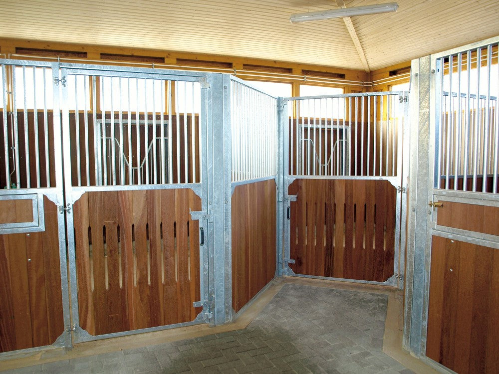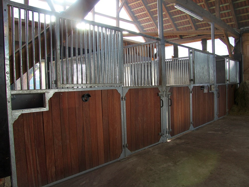 Bokshøjde 220 cm, tremmer i 3/4 ' rør - tremmehøjde 95 cm. Tremmeafstand 50 mm.