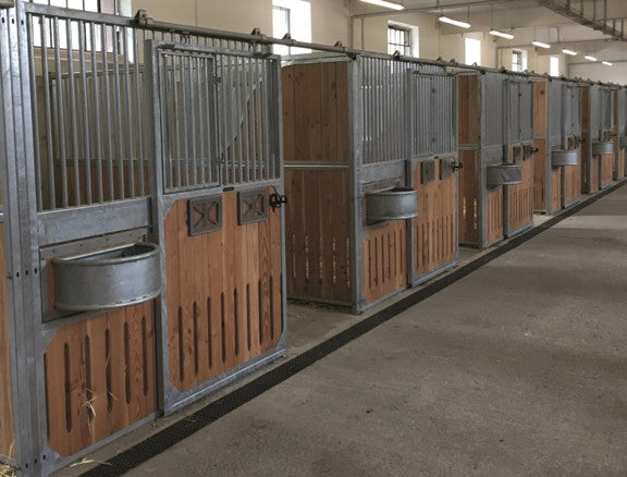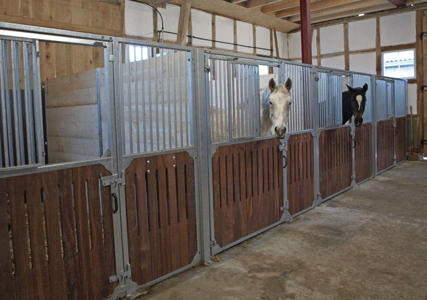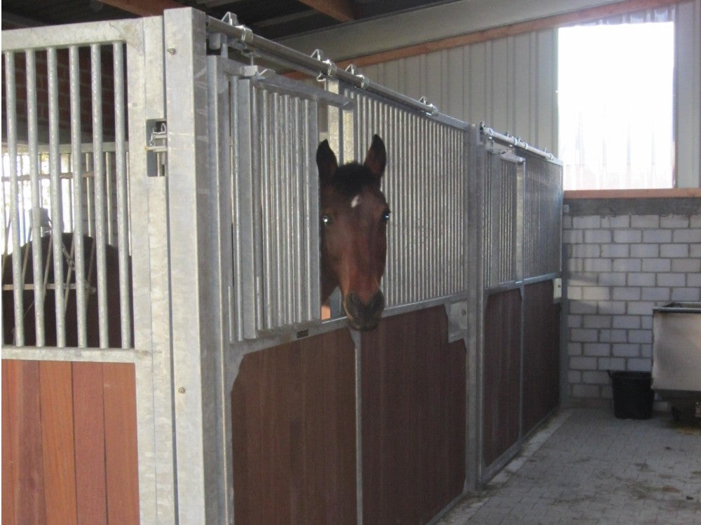 Dette er en rigtig solid standard hesteboks, til stalden med det store slid, de kraftige galvaniserede stålrammer med 38 mm Bongossi Hard Wood gør, at du ikke skal tænke på at udskifte boksene før om rigtig mange år.