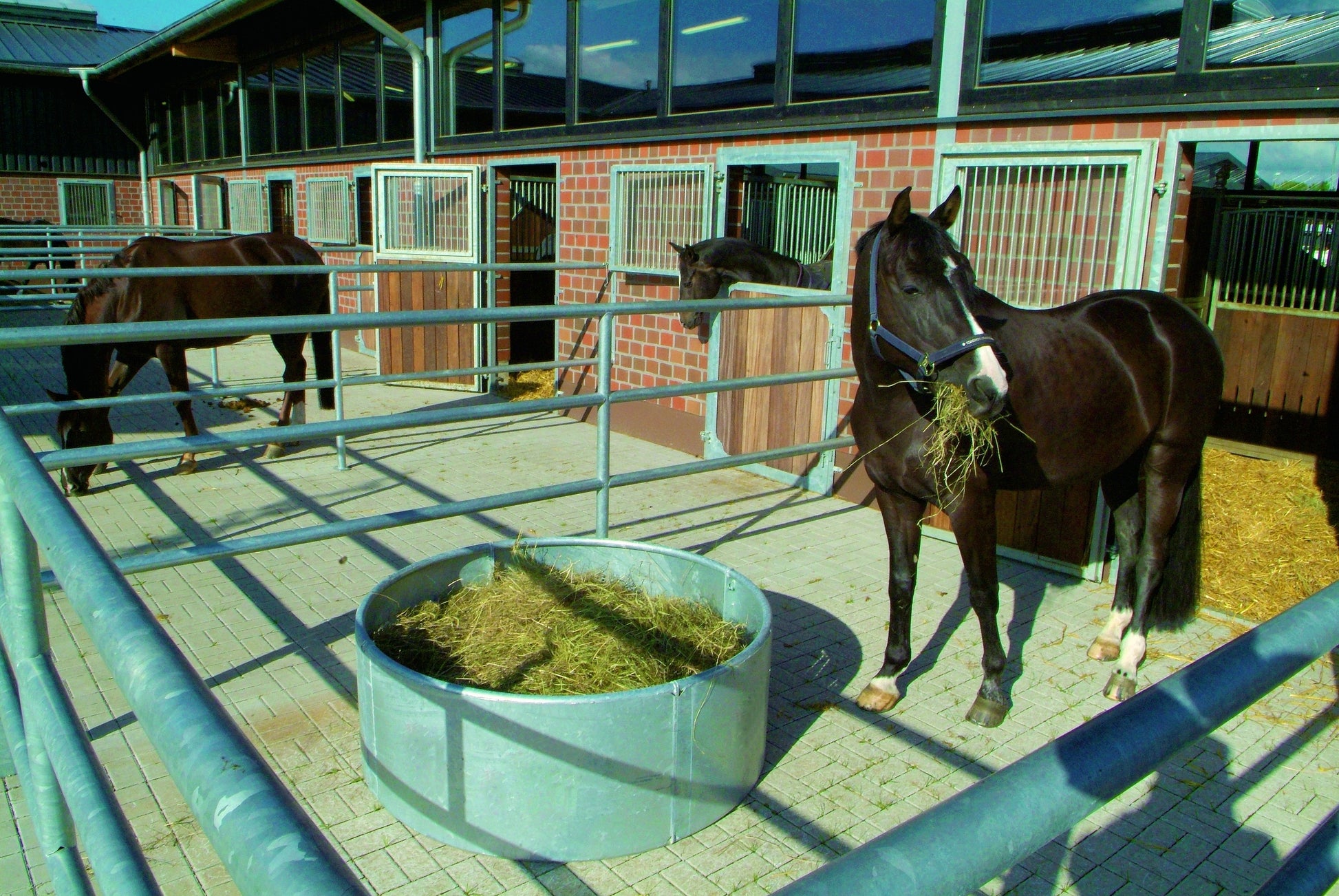 Det anbefaldes af flere dyrlæger, at hesten har adgang til grovfoder på folden hvis græs ikke er tilgængeligt. Ved at bruge en foderbeholder, er der også økonomiske fordele, da det reducere det spild af det værdifulde grovfoder.