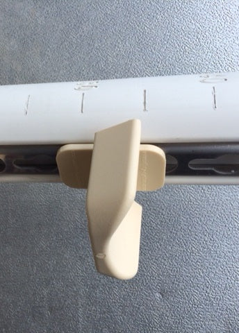6 stk. hvide enkeltstøtter med indbygget nøglehulsskinne (Højde str. 1,65 m.)