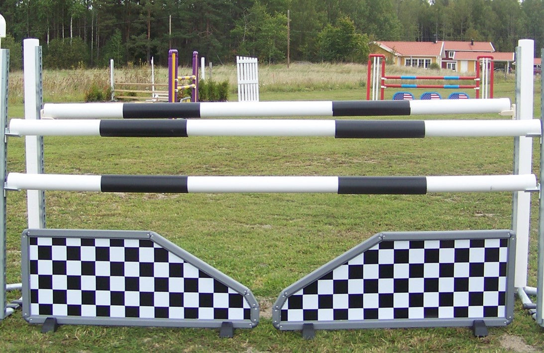 Ved at kombinere dem med vores støtter med nøglehulsskinne, opfylder du/I alle krav til stævner såvel træning. Bomskåle som benyttes til disse støtter, er fremstillet i nylon, og er godtkendt af det internationale forbund FEI (Fédération Equestre Internationale)