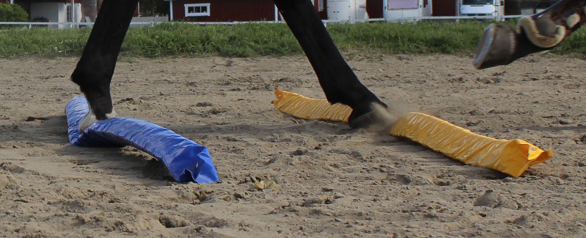 Fleksibel, smidig, let, sikker og meget anvendelig til alle former for rideøvelser. Hvis hesten træder på den, sker der ikke noget. Minsker risikoen for skader betydeligt.
